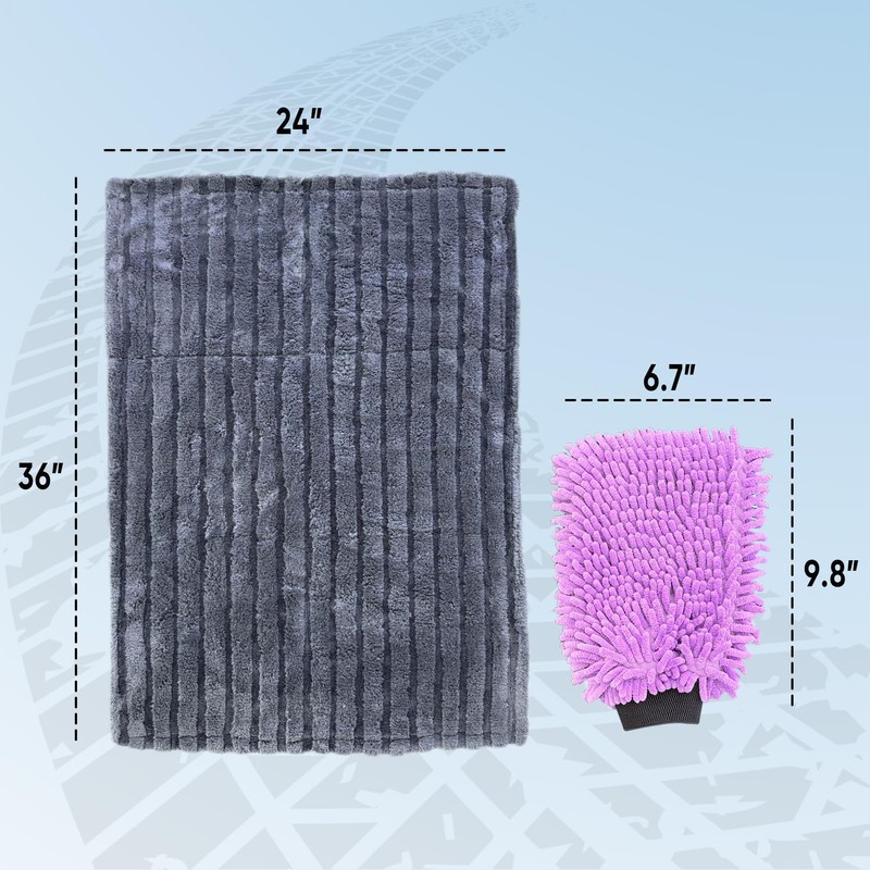 - Easy Grip: This car wash mitt is designed to fit perfectly on your hand, providing maximum control and comfort while washing. Paired with the oversized towel for quick drying, our car washing supplies make your entire car cleaning routine smoother, faster, and more enjoyable from start to finish.