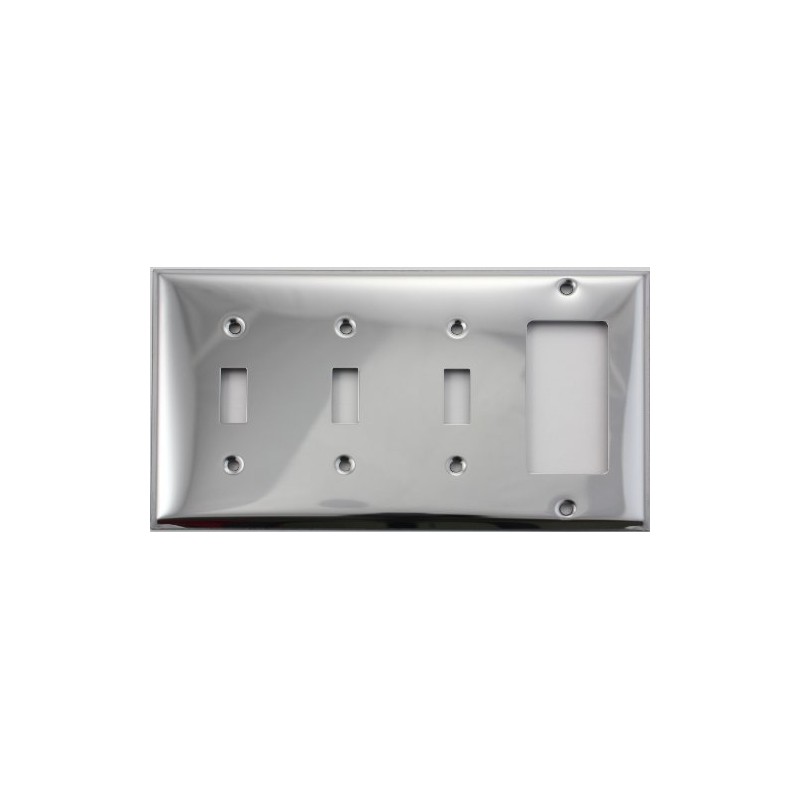 Polished Chrome 4 Gang Wall Plate - 3 Toggle Switches 1 GFI/Rocker Opening