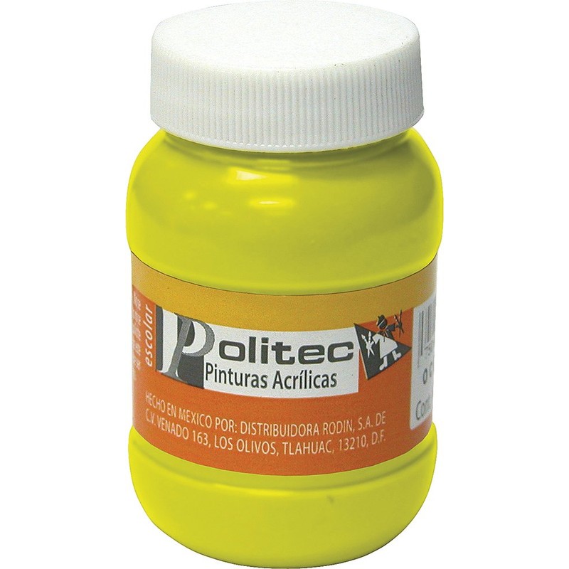 - Pintura Acrilica Politec 100 Ml.Frasco Color 318 Amarillo Medio Pza