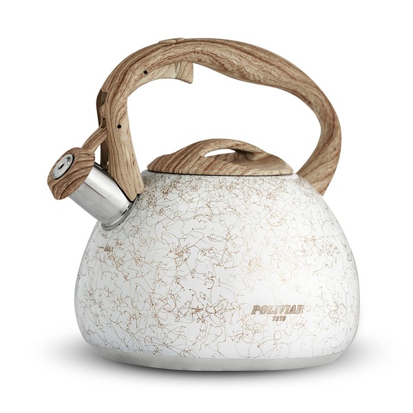 Poliviar JX2020-YB30-DE modern induction kettle, stainless steel whistling kettle, tea kettle for all hobs, whistling kettle with wood grain handle, kettle for tea and coffee, max. 3 litres, platinum wire (JX2020-YB30)
