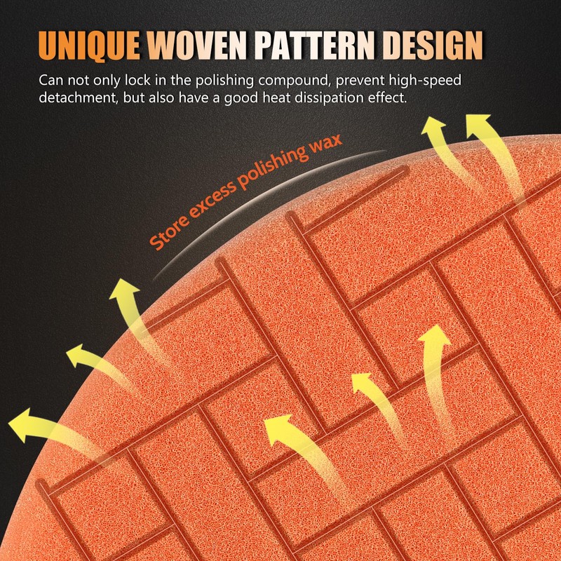 - 【Unique Surface Polishing Design】The woven pattern design on the surface of our 5in buffing pads can lock in the polishing compound, prevent high-speed detachment, good heat dissipation effect, wider compatibility and reduce the abrasion. Extends the service life of buffing polishing sponges, achieve a ideal polishing result.