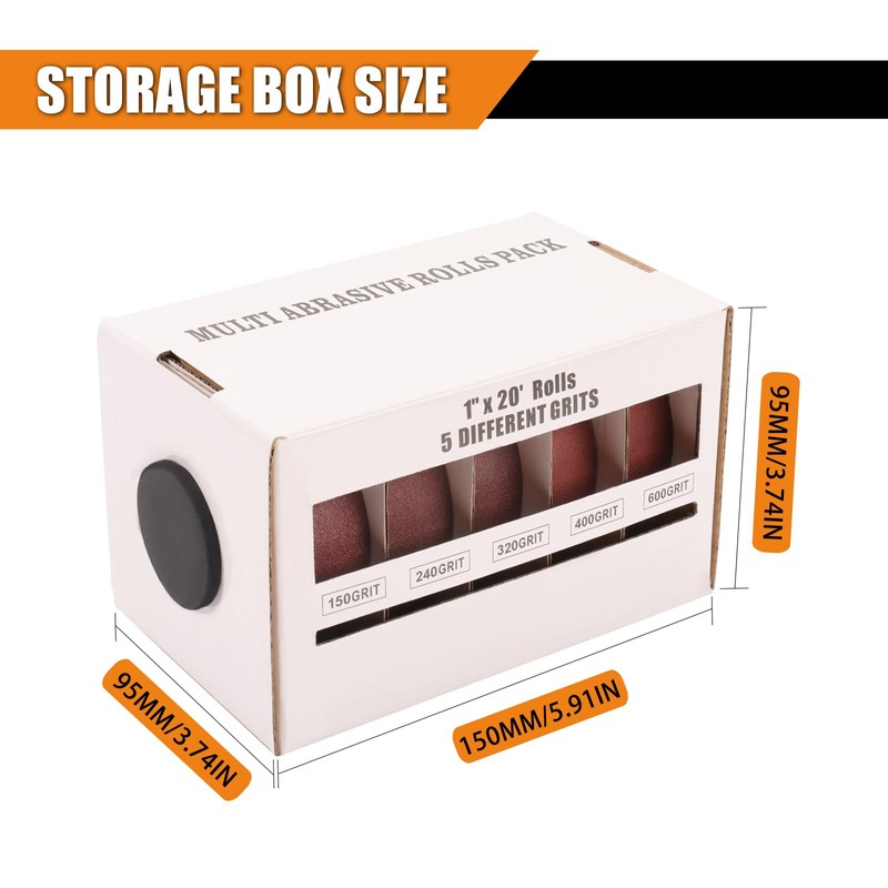 - 5 Grit Set: Our emery cloth have 5 different grits, from coarse to fine: 150/ 240/ 320/ 400/ 600 Grit. Each abrasive roll is 25mm x 6 meter (1 inch x 19.7 feet), made by premium aluminium oxide grains which are resin-bonded for extended useful life