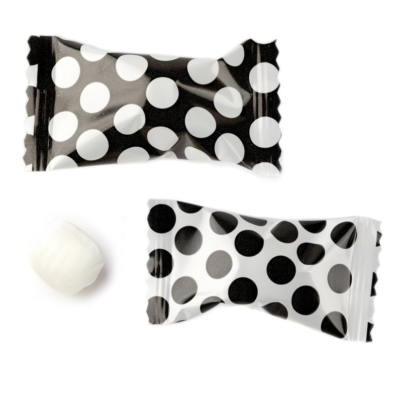 Buttermints 100 Count Wrapped in Black & White Polka Dot Candy Wrapper - Mint Candy