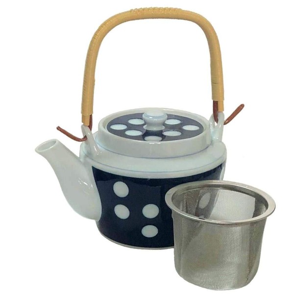 Polka Dot No. 6 Earthenware Bottle with Stainless Steel Tea Strainer, Made in Japan