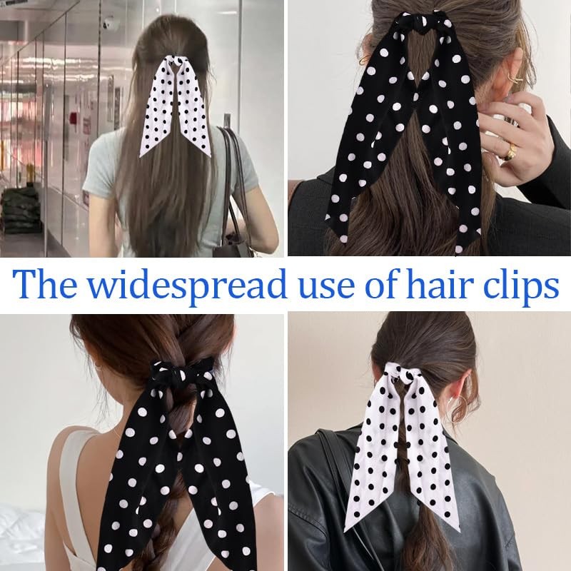 - Polka Dot Large Tail Hair Ties: You will receive two polka dot hair rings, one black polka dot hair ring and one white polka dot hair ring, which can be paired with any style of clothing, the design of the long tail adds a sense of freedom to you, and the chiffon material can make your hair as smooth as the ribbon of the polka dot hair ring, perfect spring fall summer hair accessories, polka dot hair ponytail for long thick hair