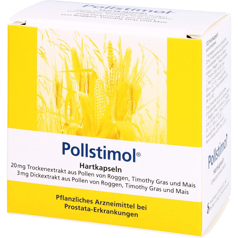 Pollstimol Hartkapseln. Wirkstoff: Gräserpollenextrakt (Roggen - Timothy Gras - Mais). Anwendungsgebiete: Miktionsbeschwerden bei einer gutartigen Prostatavergrößerung (BPH) Stadium I bis II nach Alken bzw. II bis III nach Vahlensieck, chronische abakterielle Prostatitis.