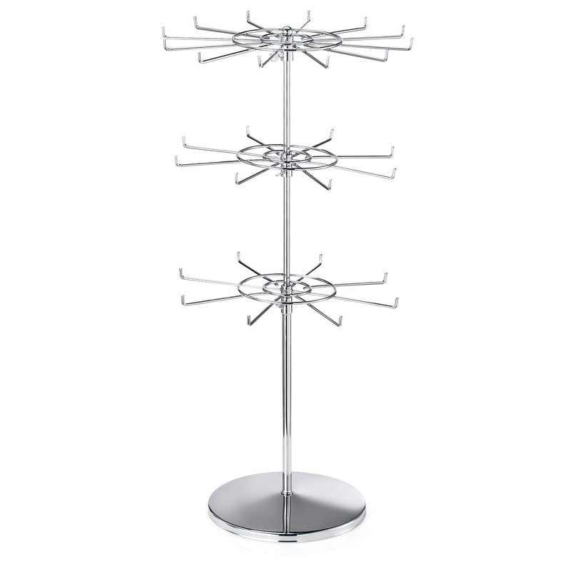 Polmart Countertop Heavy Duty Adjustable Three Tier Spinner Display Stand Product Spec Adjustable Stand Rod Height: Highest 32 in Lowest 22.5 in Stand Rod Diameter: Upper Portion: 0.4 in Lower Portion: 0.5 in Base Plate Diameter: 9 in Base Plate Weight: 1.3 lb 8-prong Spinner Diameter: 12.5 in 12-prong Spinner Diameter: 12.5 in