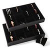 Polmart Stackable 12-Grid Jewelry Tray with Pillow, Black Velvet (2-Pack)