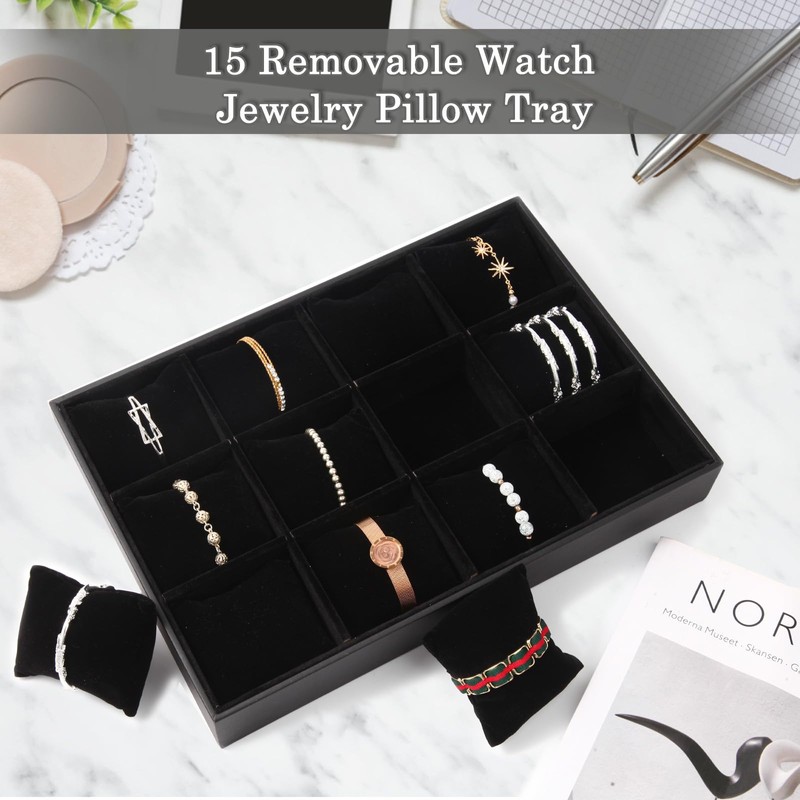 - Design: The jewelry tray pillow can your Watch, Bracelet or Bangle in convenient compartments and store them in orderly fashion. The divided compartments of our tray will accommodate a standard jewelry collection and will help you find everything much easier.
