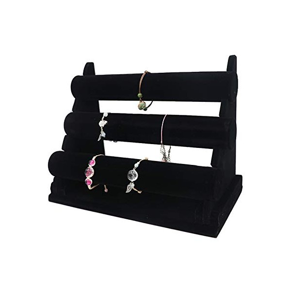 Polmart W3-BL Detachable 3-Tier / Triple Bar Jewelry Display, Black Velvet