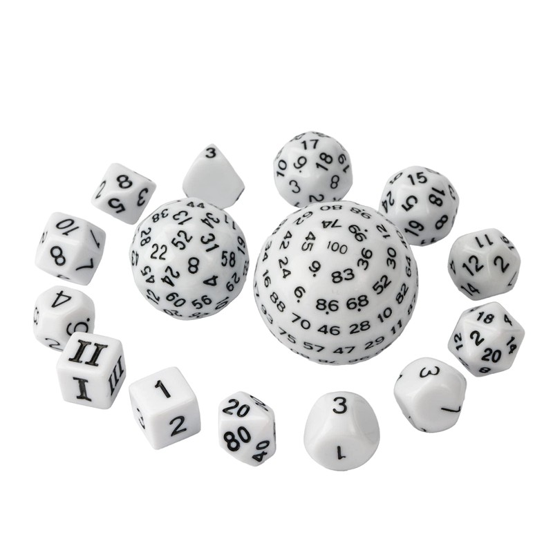 Poludie 15 Pieces Complete Polyhedral DND Dice Set D3-D100 Spherical D&D Dice Set with Dragon Eye Dice Bag, D100 Dice for Dungeons and Dragons, RPG, MTG Table Games(White w/Black Numbers)