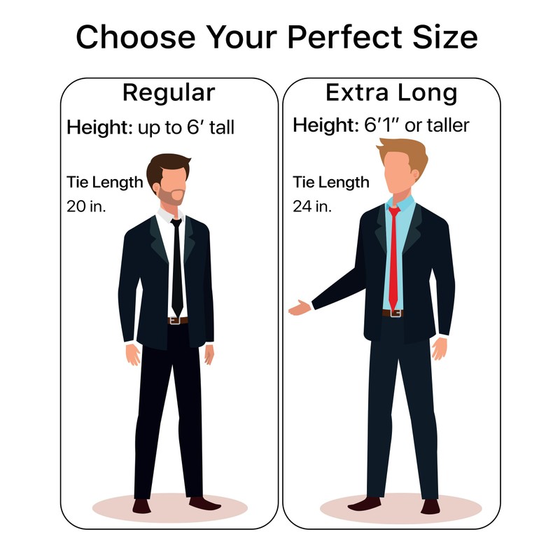 - PERFECT LENGTH: If you are up to 6 feet tall a Regular 20” tie would be a perfect fit, if you are over 6'1" tall an Extra Long 24" clip on tie would fit best