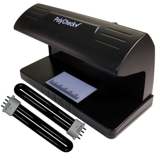 PolyCheck 2-in-1 UV Counterfeit Money Detector with 2 Spare DuraBulb Bulbs
