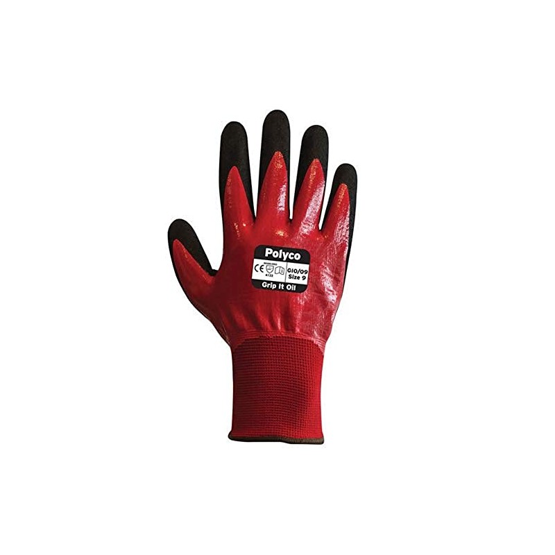 Polyco GIO/09 Grip It Oil Seamless Nylon Glove with Dual Nitrile Coating, Size 9
