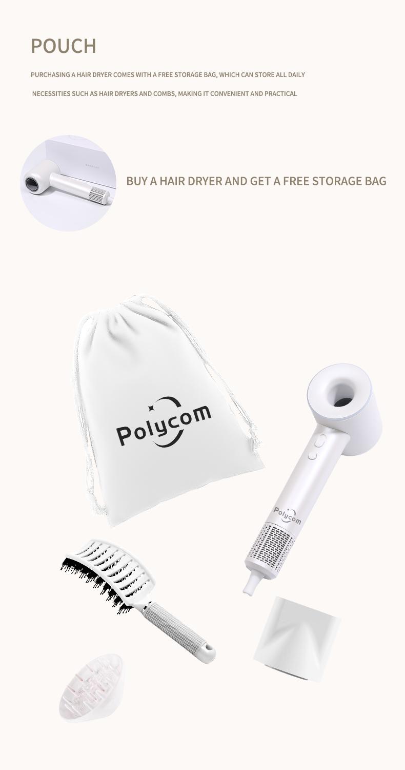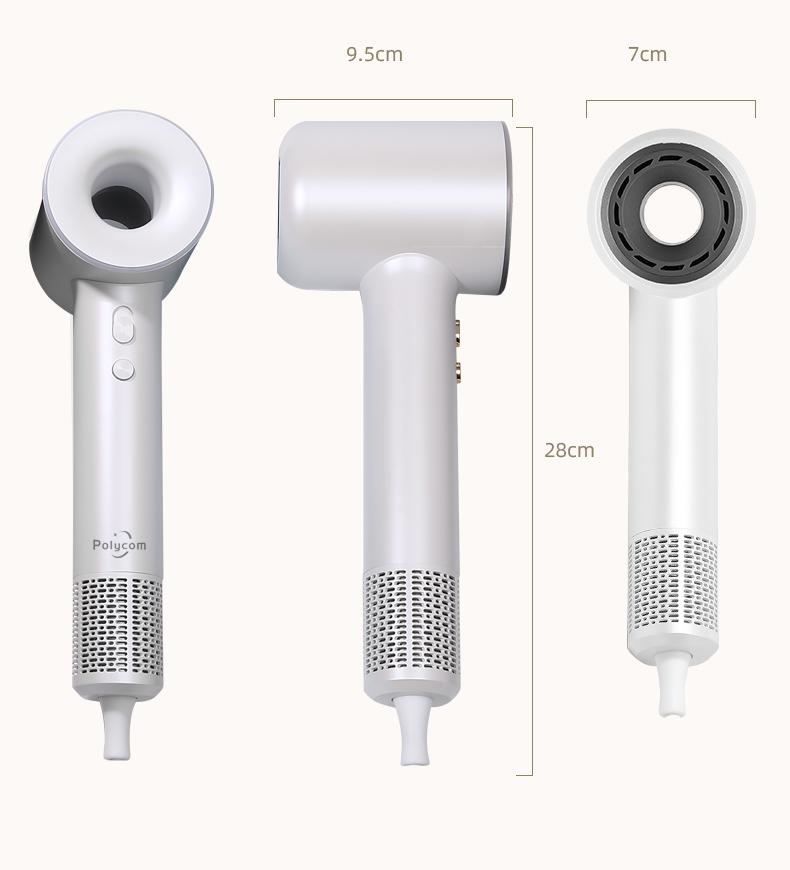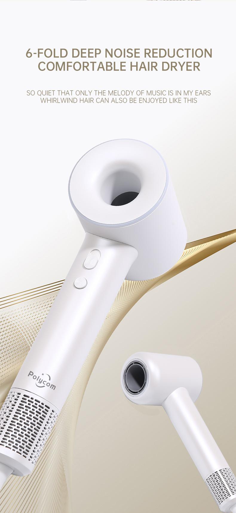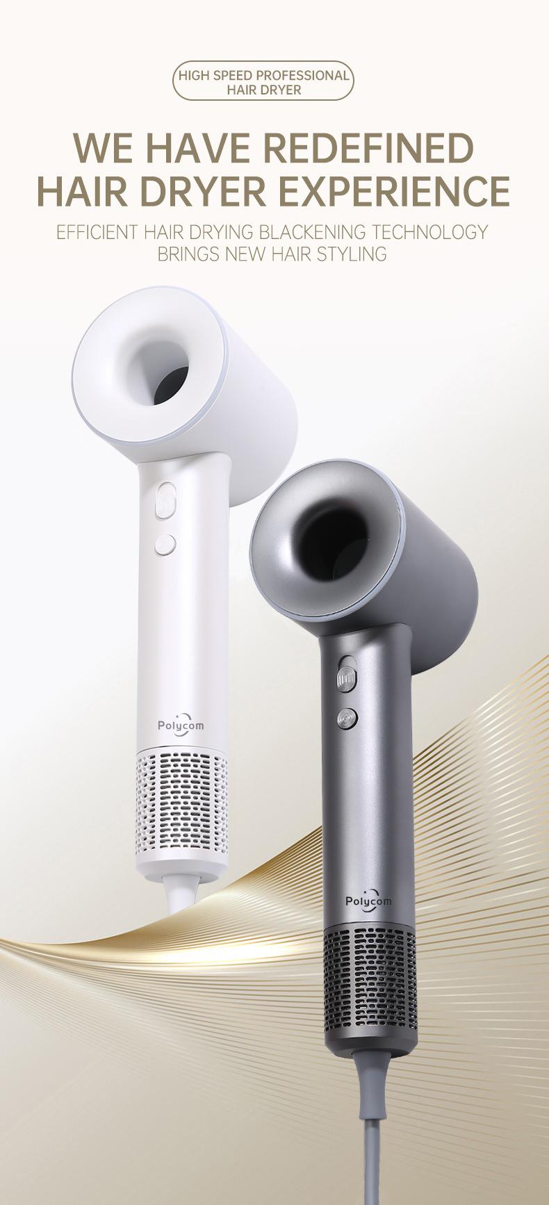 Polycom-Hair Dryer with Diffuser, Hollow Ionic Blow Dryer 110K Brushless Motor Diffuser Hair Dryer Low Noise, 150,000RPM High Speed Hair Dryer Thermo-Control 4 Temps/ 2 Speeds, Travel Hair Dryers with comb and collection bagn bag - Color: Grey
