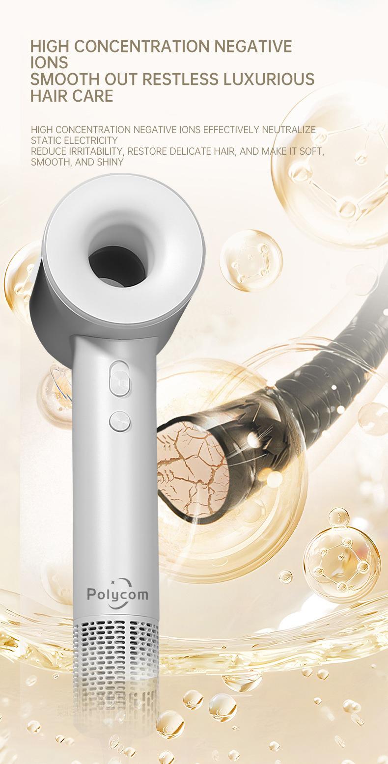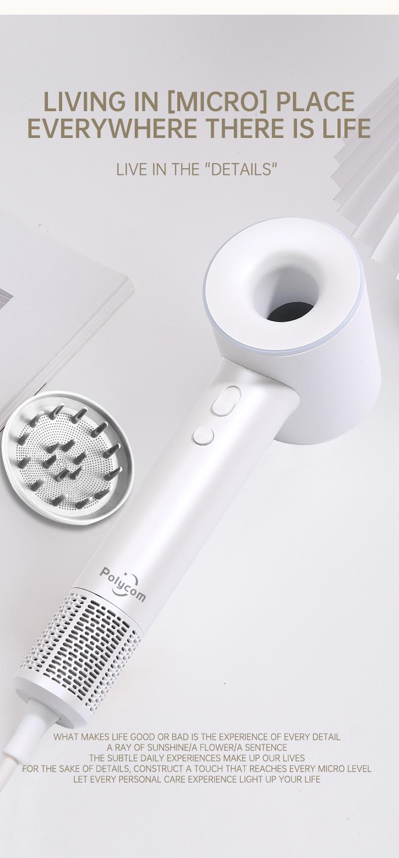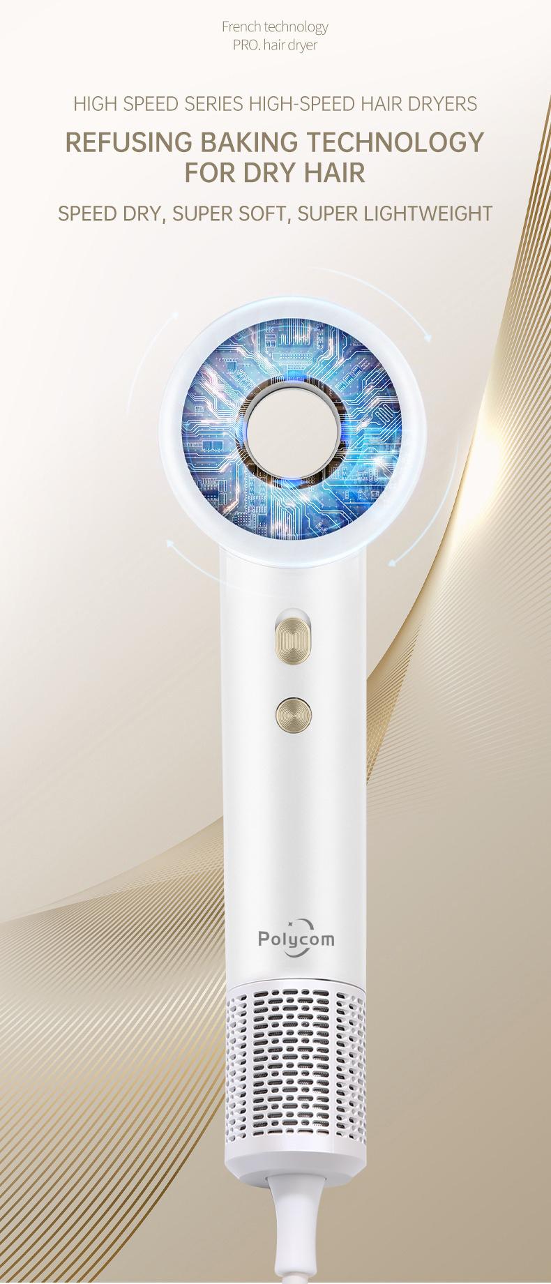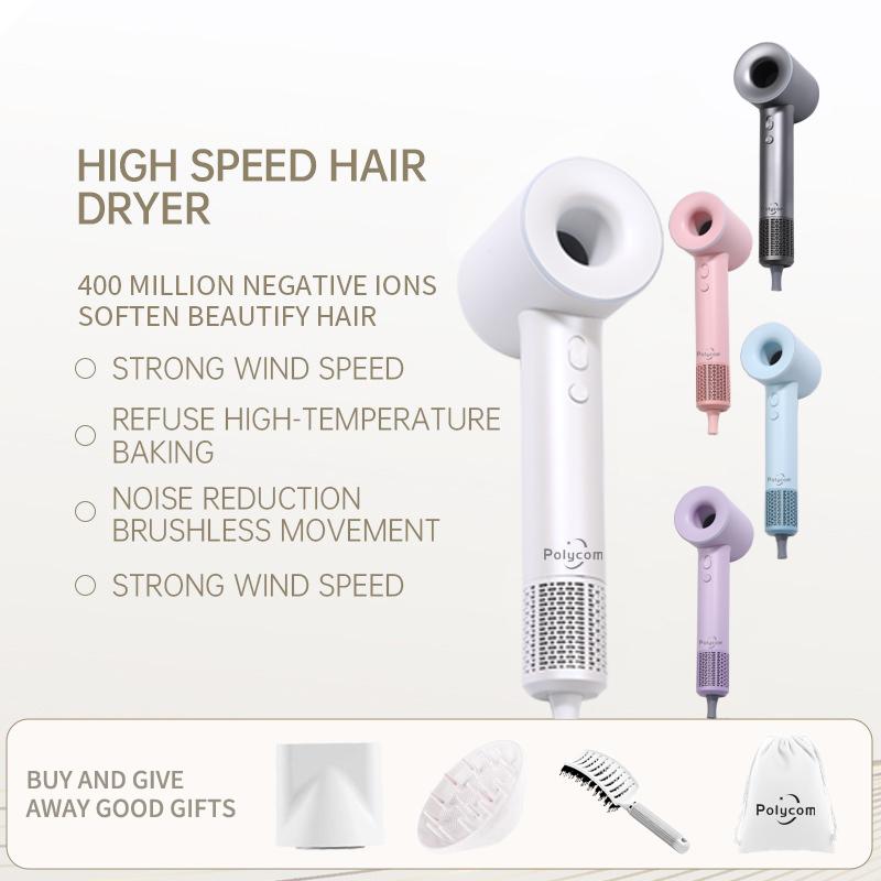 Polycom-Hair Dryer with Diffuser, Hollow Ionic Blow Dryer 110K Brushless Motor Diffuser Hair Dryer Low Noise, 150,000RPM High Speed Hair Dryer Thermo-Control 4 Temps/ 2 Speeds, Travel Hair Dryers with comb and collection bagn bag - Color: Grey