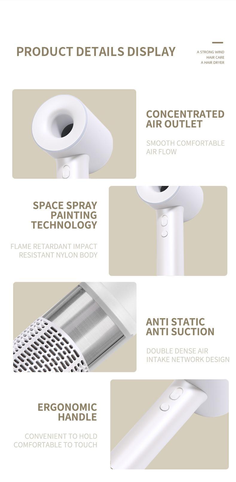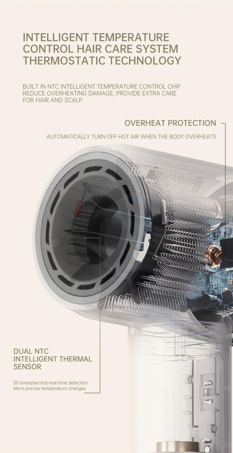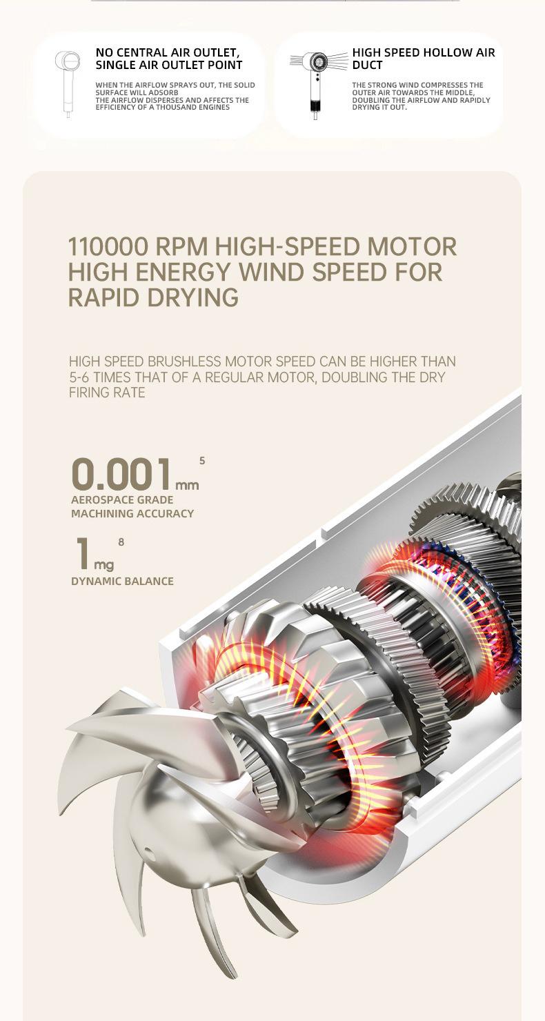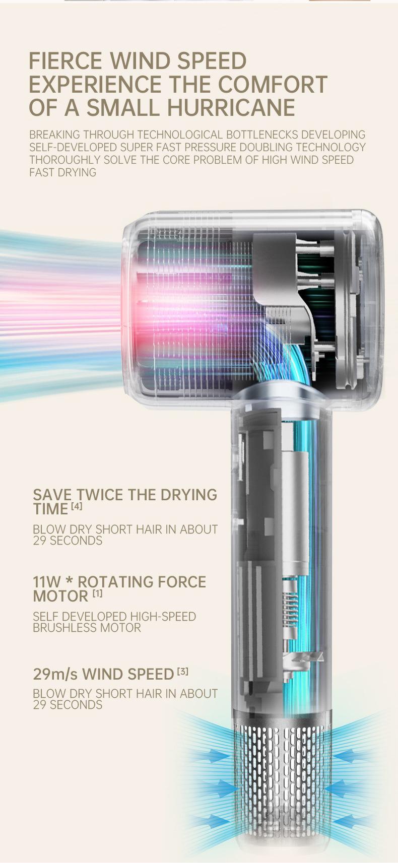 Polycom-Hair Dryer with Diffuser, Hollow Ionic Blow Dryer 110K Brushless Motor Diffuser Hair Dryer Low Noise, 150,000RPM High Speed Hair Dryer Thermo-Control 4 Temps/ 2 Speeds, Travel Hair Dryers with comb and collection bagn bag - Color: Grey
