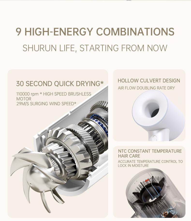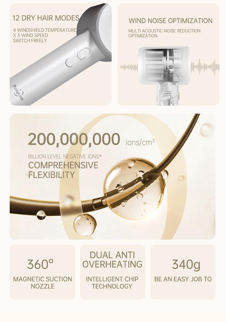 - Feature: Ionizer,Volumizing,Moisturizing,Frizz Reduction,Heat Protection,Shine Enhancing,Hot and Cold,Foldable Handle