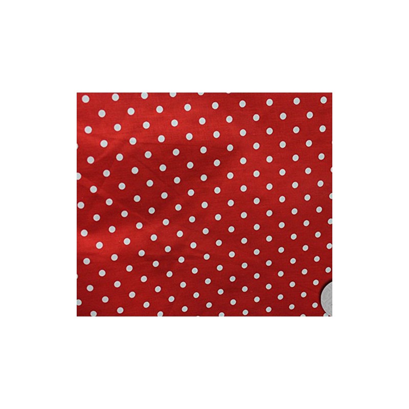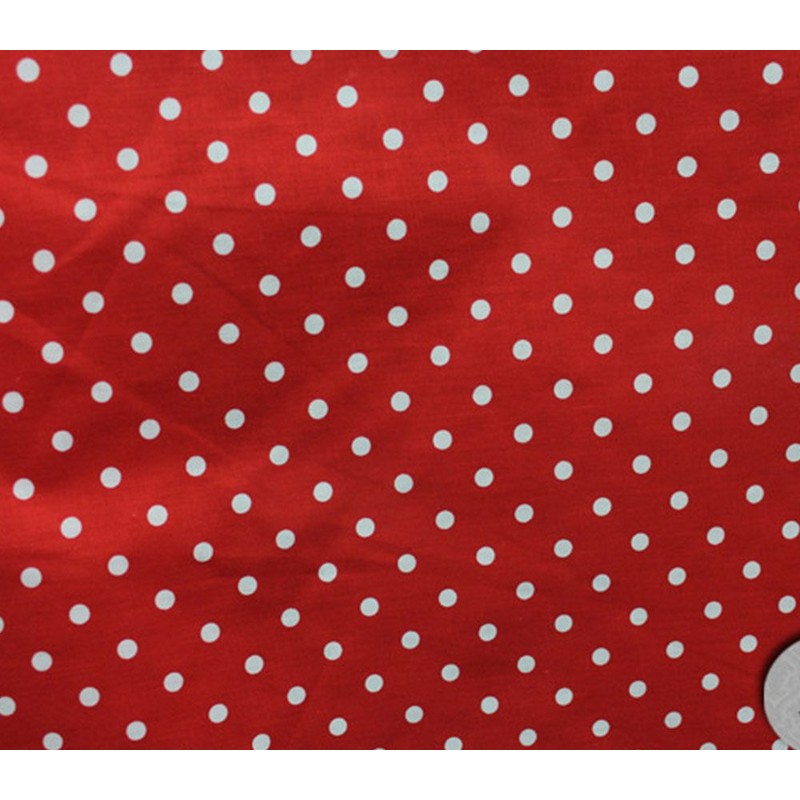 Polycotton Fabric Printed Small DOTS White RED Background / 60" Wide/Sold by The Yard