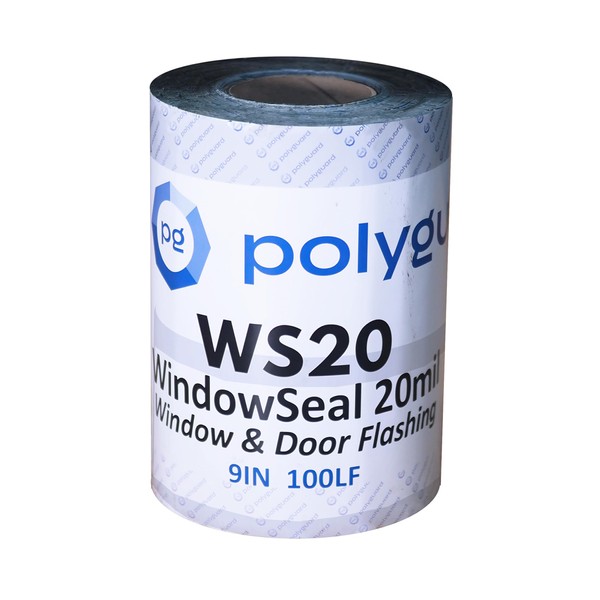 POLYGUARD WindowSeal Window and Door Flashing Tape, 9 in x 100 ft Roll, 20 mil Thick, Self-Sealing & Self-Adhering Waterproof Barrier