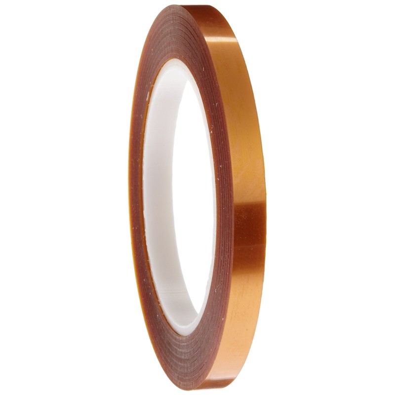 Polyimide Double Sided Masking Tape, 3" Core, 500 Degree F Performance Temperature, 30 lbs/inch Tensile Strength, 1 mil Thick, 36 yds Length x 3/8" Width, Amber