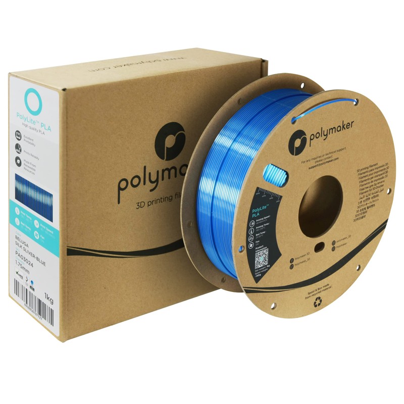 Polymaker Dual Color Silk PLA Filament 1.75mm Silver-Blue, Coextrusion Shiny PLA 3D Printer Filament Dichromatic 1kg - Silk Filament 1.75 PLA 2 Colors, Dimensional Accuracy +/- 0.03mm (Beluga)