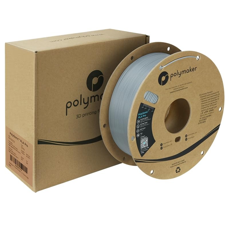 Polymaker High Speed PLA Pro Filament 1.75mm, Grey PolySonic PLA Pro 3D Printer Filament 1kg - Stronger Fast Printing PLA Compatible with Most Printers