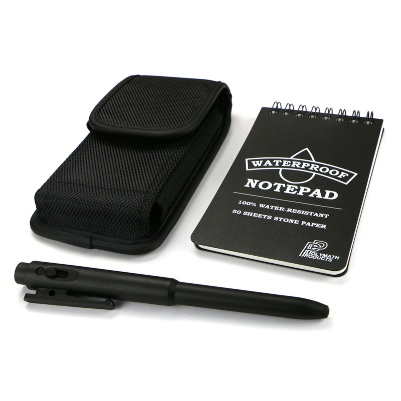 Also included is a sturdy nylon holster pouch for the notepad and pen, which can be mounted on a belt or rucksack strap, horizontally or vertically.