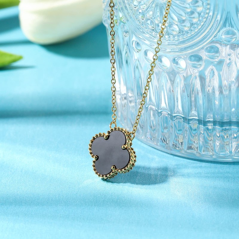 POLYREAL Lucky Clover Necklace for Women Girls 18K Gold Plated Adjustable Hypoallergenicity Cute Simple Necklace Pendant Jewelry Holiday Gifts (Gold Black-A), Titanium Steel, No Gemstone