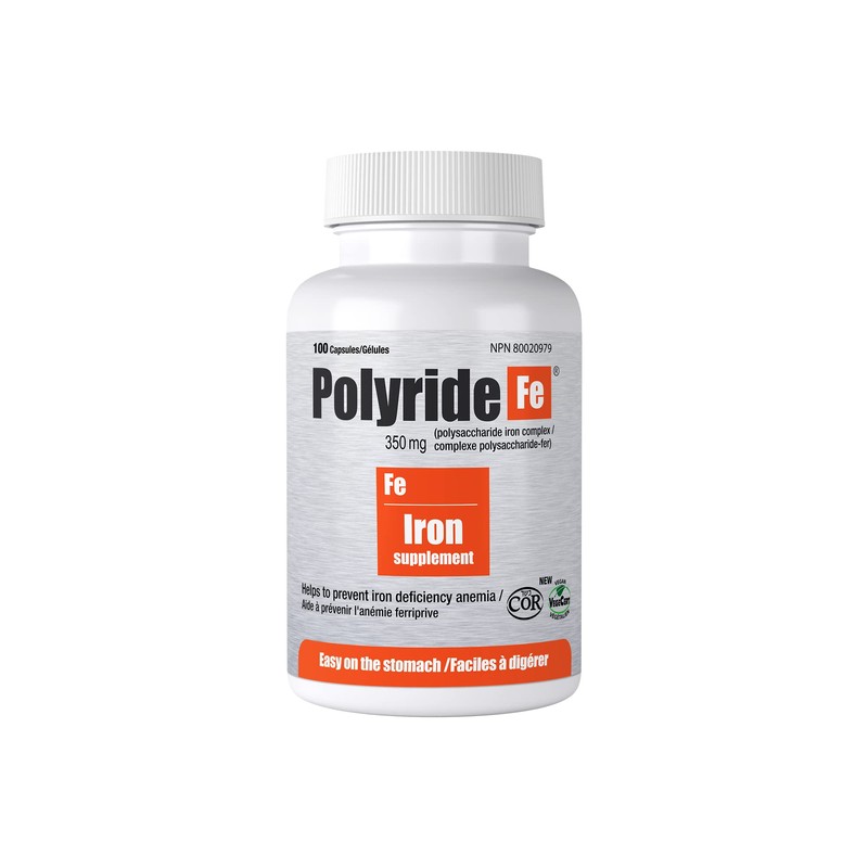 Polyride Fe Polysaccharide Iron Complex, Deficiency Anemia, Easy on the Stomach with Energy Support and 150 mg Elemental Iron, | 350 mg - 100 Capsules