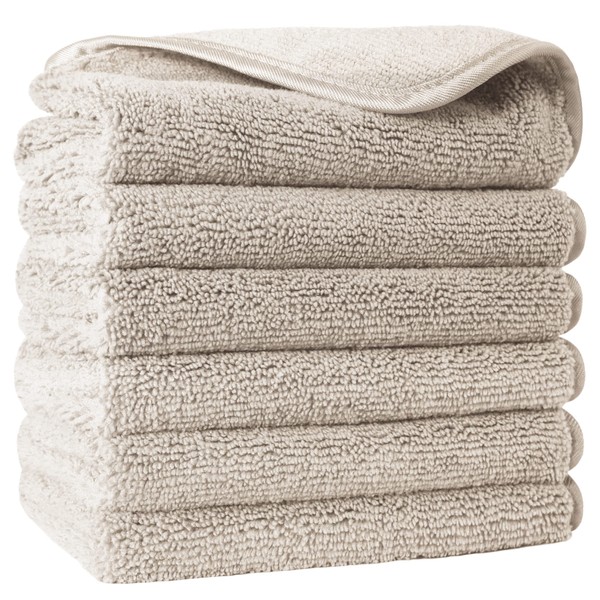 POLYTE Premium Lint Free Microfibre Washcloth Face Towel, 33 x 33 cm, Set of 6 (White)