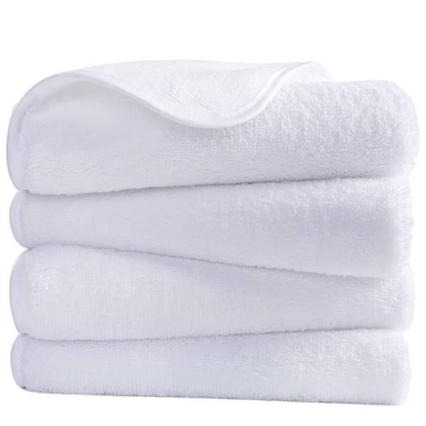 Polyte - Premium Microfibre Towel - Lint Free & Quick Drying - White - 40 x 76 cm - Pack of 4