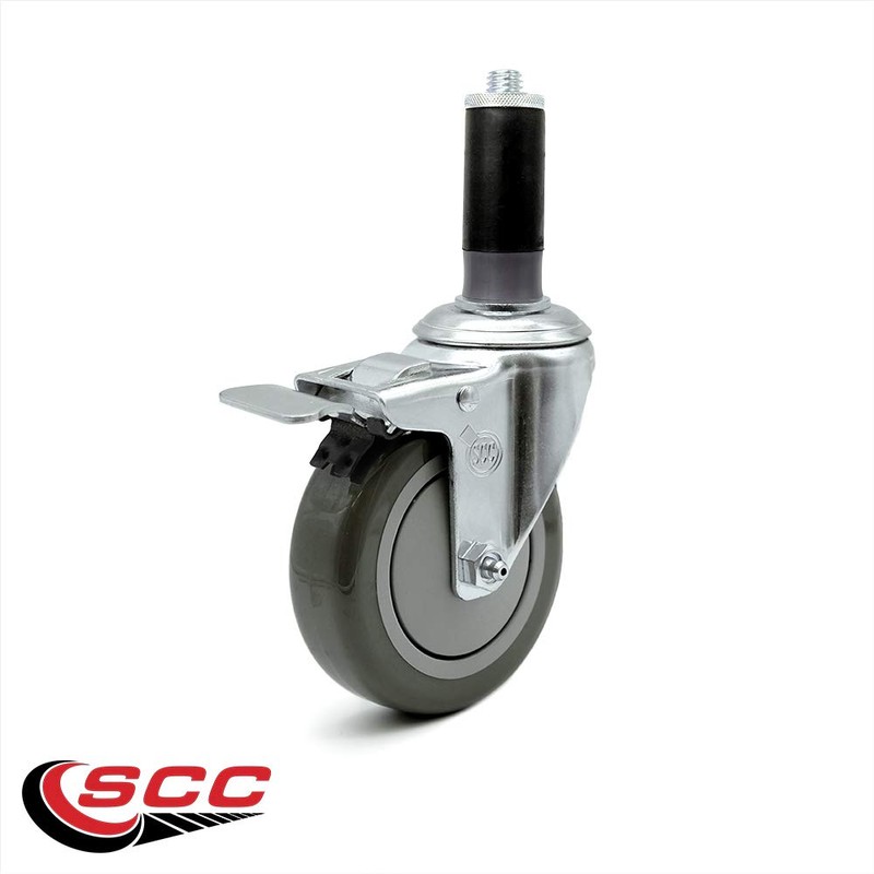 Polyurethane Swivel Expanding Stem Caster Set of 4 with 4 Inch Gray Wheels and 1-1/4" Stems - Includes 4 Swivel with Total Locking Brakes - 350 lbs. Capacity Per Caster - Service Caster Brand
