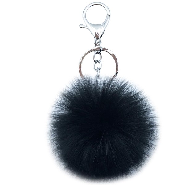 Pom Pom Keychain Artificial Fox Fur Soft Ball Keychains Fluffy Tote Pendant Car Bag Charm,black