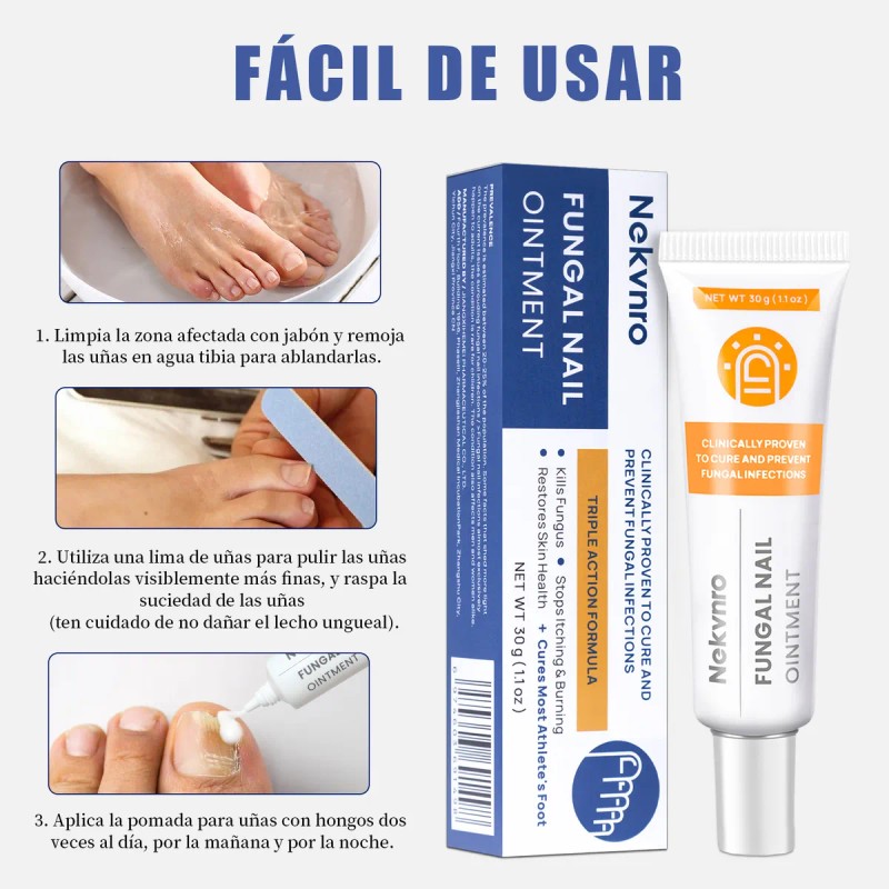 Pomada antifúngica especializada en el tratamiento de infecciones por hongos en las uñas de manos y pies. Ayuda a restaurar la apariencia saludable de la uña y prevenir la propagación del hongo.