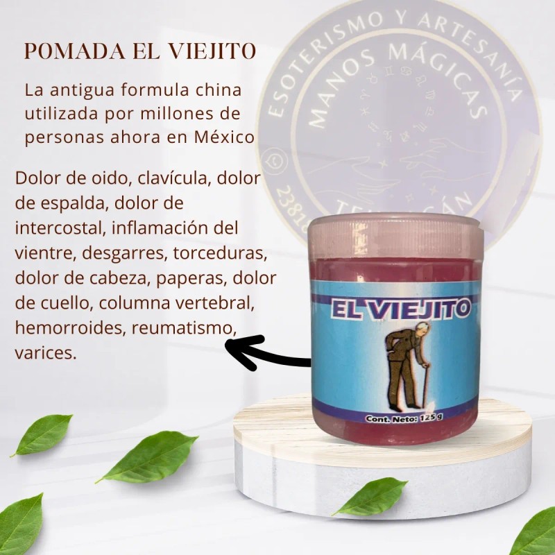 Descubre el poder de la Pomada El Viejito, una fórmula tradicional hecha con ingredientes 100% naturales diseñada para aliviar eficazmente dolores musculares, articulares y de todo el cuerpo. Ideal para personas de todas las edades, esta pomada es perfecta para tratar molestias en la espalda, cuello, piernas y brazos, ofreciendo un alivio rápido y duradero.