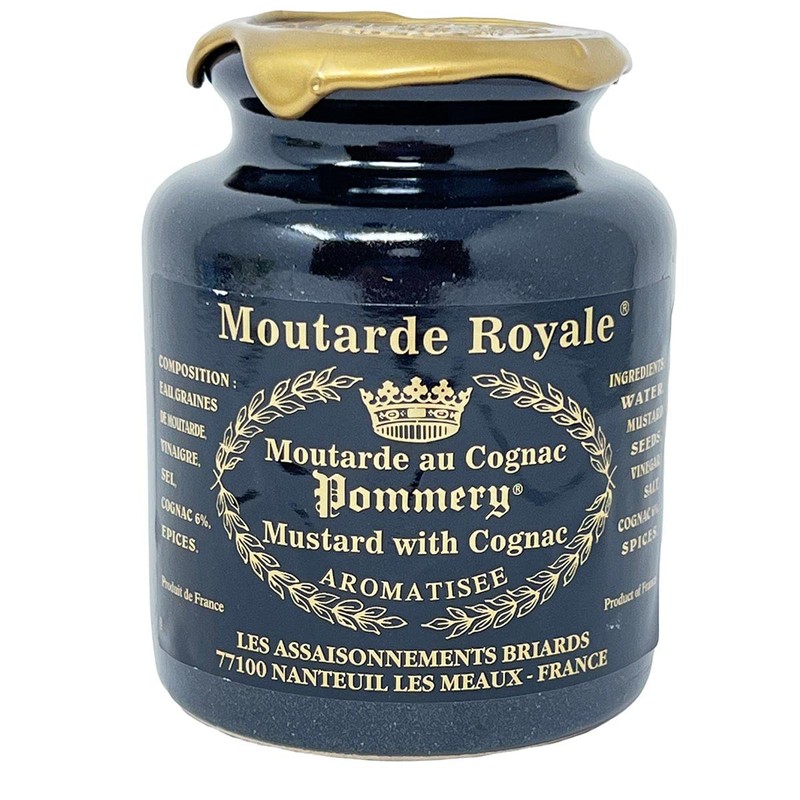 Amazingly smooth and tasty whole-grained mustard from Meaux. Mustard from Meaux has been served at the tables of French kings since 1632 and made by the Pommery family according to a closely guarded secret recipe since 1760. A special blend of spices and, of course, cognac (6%) give the Royal mustard with cognac a regal boost. Product of France. Net Weight: 250 Grams