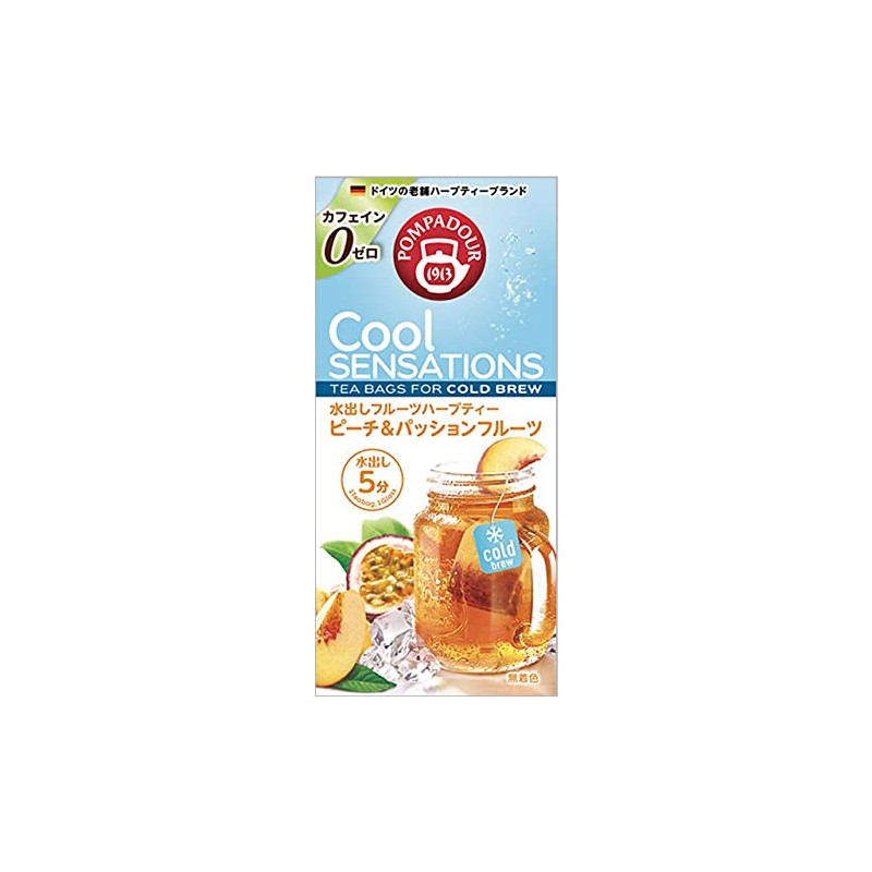 - "Cool Sensation" is a line of cold brew herbal tea by Pompador. 1 tea bag in 250ml water and consumes in 5 minutes at room temperature. A light sweet peach scent and a refreshing tart taste of passion fruit
