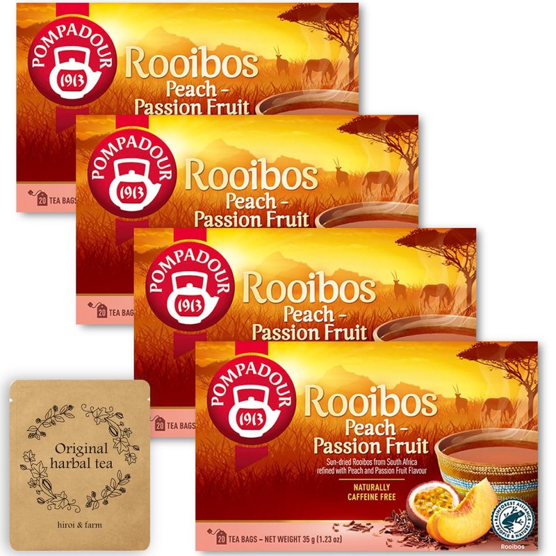 Pompadour Rooibos Tea Peach & Passion Fruit (20 TB) x 4 Boxes + Matcha Stick Sample Included