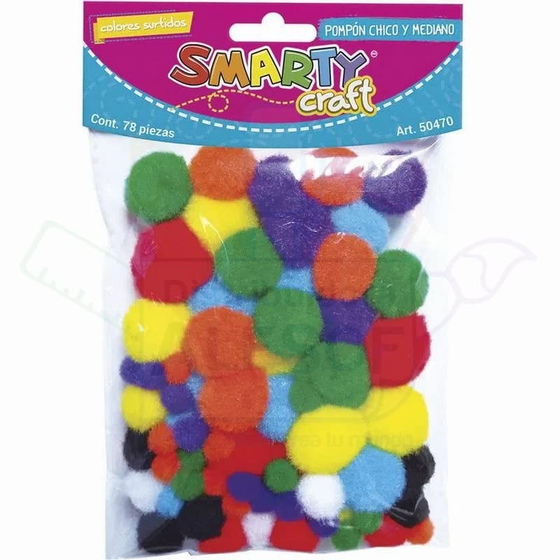 Pompones Chicos y Medianos Colores Surtidos Bolsa con 78 Piezas