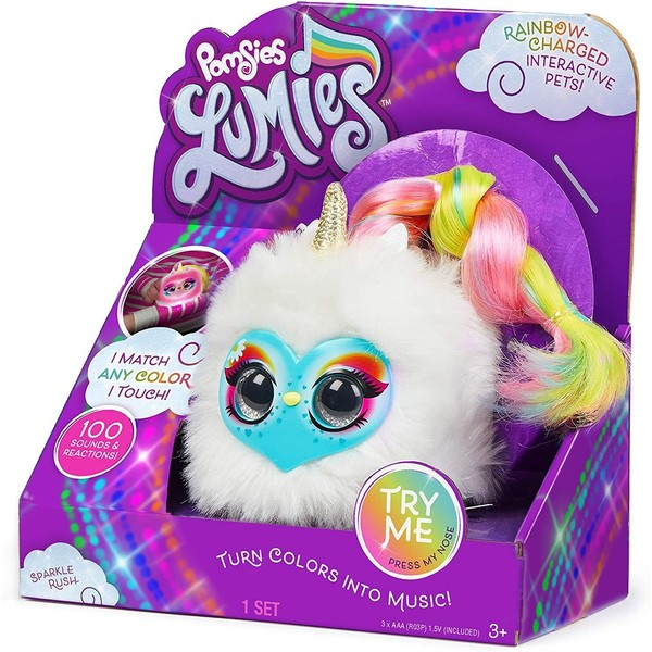 Pomsies Lumies SPARKLE RUSH Plush Unicorn Interactive Toy New Changes Colors