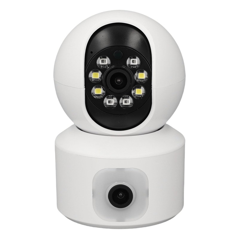 - DUAL LENS DUAL VIEW: Equipped with a dual lens dual camera design, this WiFi security camera offers synchronized view from both upper and lower lenses, providing dual image for comprehensive, no blind spot surveillance coverage.