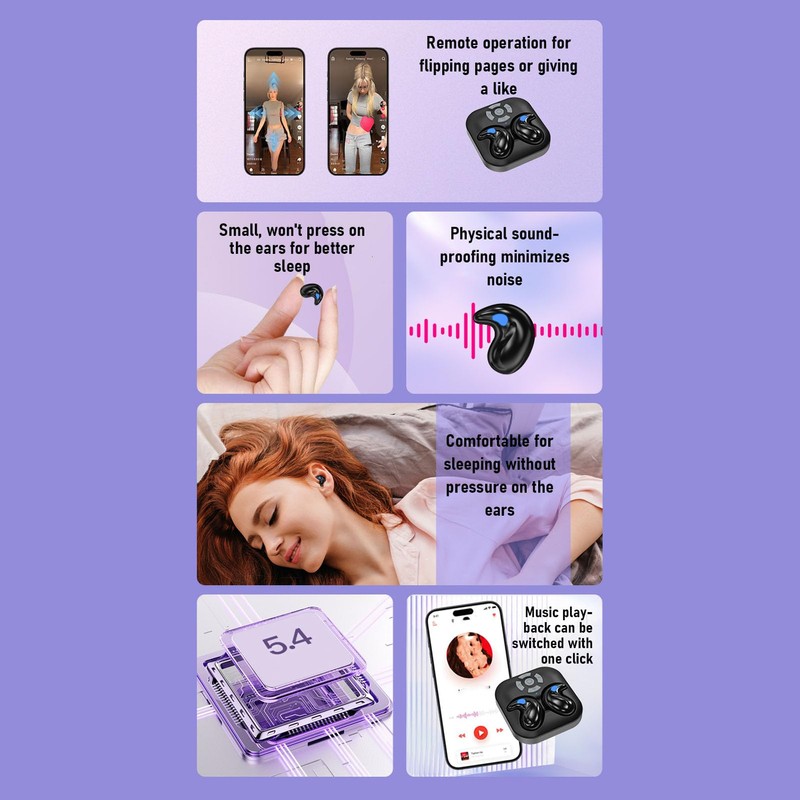 - Compact Earbuds Design: These earbuds are engineered for comfort during sleep, with a small body that fits securely in any ear shape. They won't protrude, allowing for side sleeping without pressure.