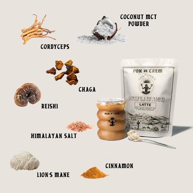 Pon de Crem Adaptogen Coffee Creamer – Low-Calorie, High-Performance, Bulletproof Super Latte with Mushroom Adaptogen. Keto. Delicious. Free Frother. Creamy Vegan Creamer.