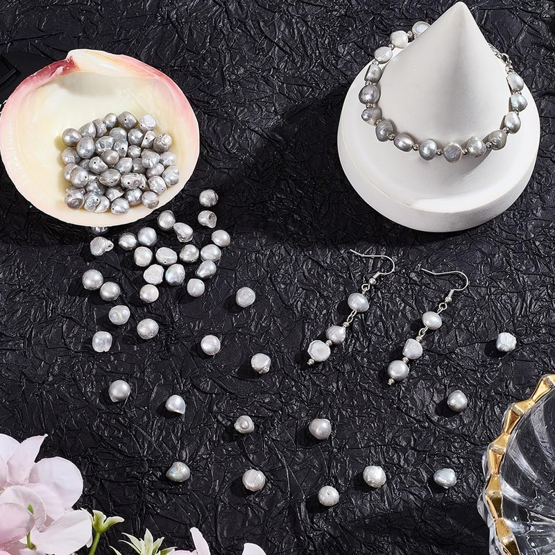 - 100PCS Natural Baroque Pearl Beads: Silver gray baroque pearls add raw sophistication by blending industrial chic with natural charm. Silver gray baroque pearls are perfect for edgy and elegant jewelry