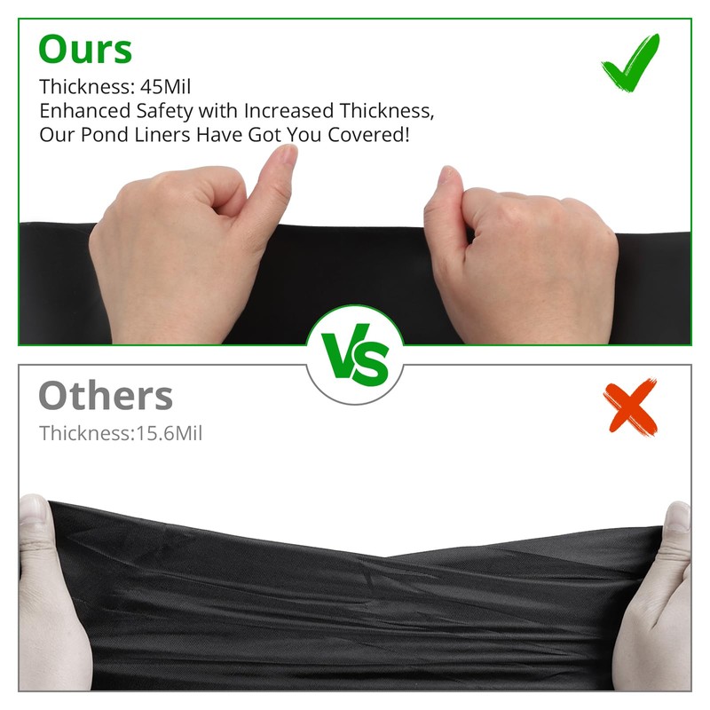 - Easy Cutting:This fish pond liner has durable yet lightweight, easy to install and bend, stretched around corners to fit nearly any pond shape. You can cut it to the size you want to fit all irregular surfaces.
