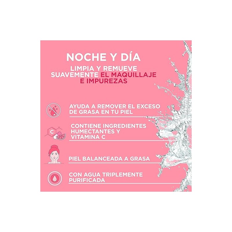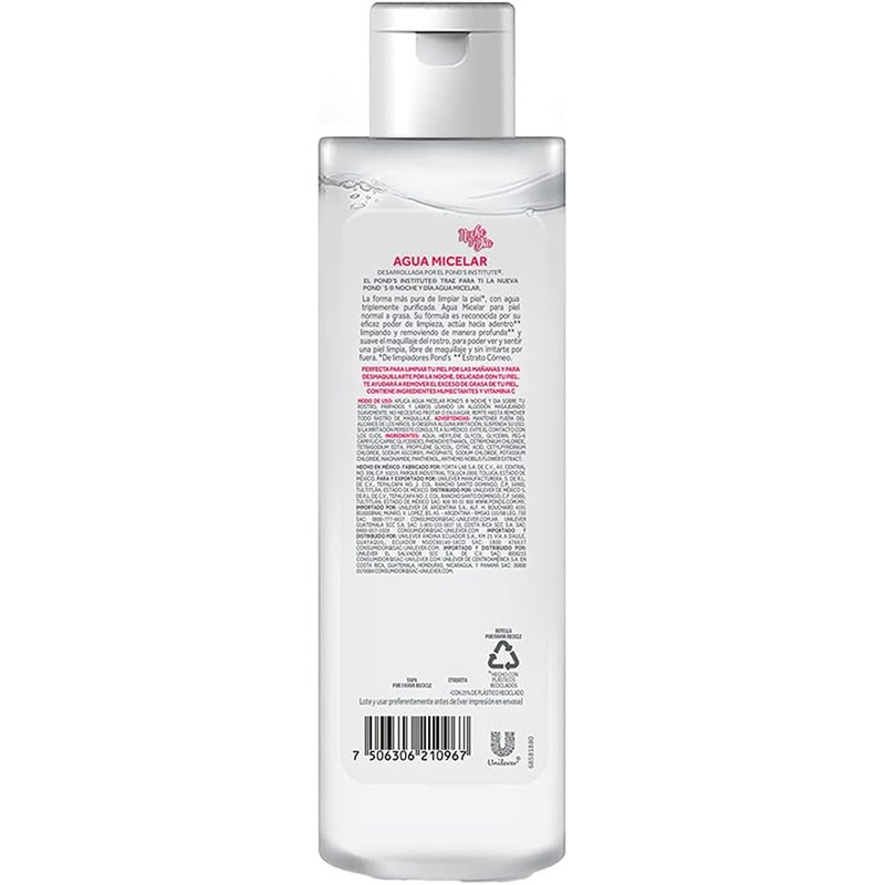 Agua Micelar Noche & Día POND'S para piel balanceada a grasa. Su fórmula es reconocida por su eficaz poder de limpieza, actúa hacia adentro* limpiando y removiendo de manera profunda* y suave el maquillaje del rostro, para poder ver y sentir una piel limpia, libre de maquillaje y sin irritarte por fuera.* La forma más pura de limpiar la piel, con agua triplemente purificada. Contiene ingredientes humectantes y vitamina C. Recuerda hacer tu rutina de limpieza facial diariamente !Cuida y protege tu piel con POND'S! *Estrato Córneo.
