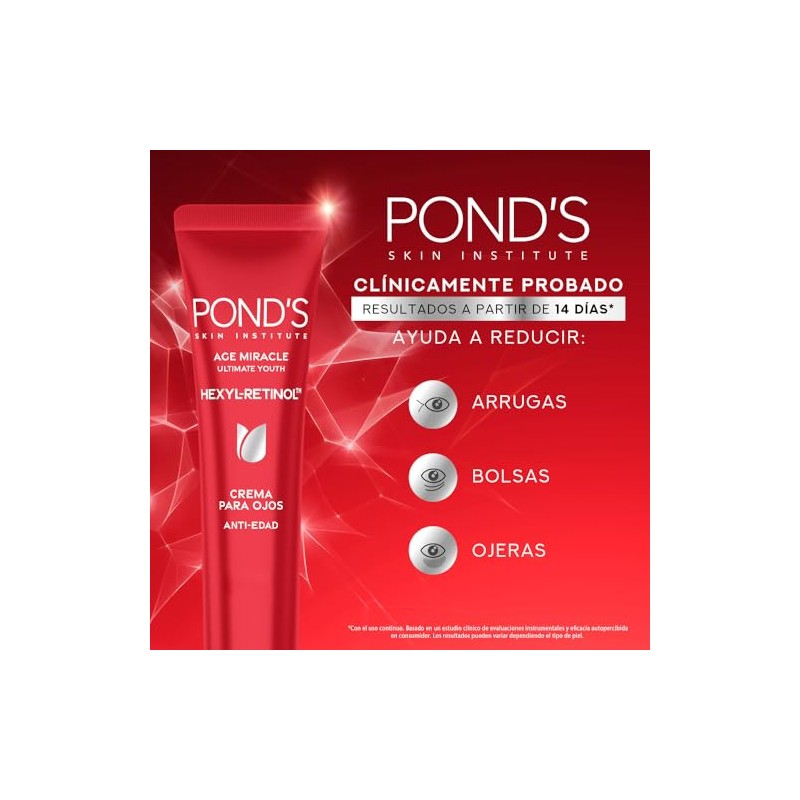 POND'S - POND'S Crema Ojos Age Miracle Ultimate Youth Hexyl-Retinol 15 ml. 💯 Autenticidad y máxima durabilidad comprobadas. Diseño ergonómico y funcionalidad excepcional. 🎯 Producto más buscado del mes. Ideal para quienes buscan lo mejor en calidad y estilo. Producto auténtico con satisfacción total asegurada. ¡No te quedes sin el tuyo y aprovecha esta oportunidad única!
