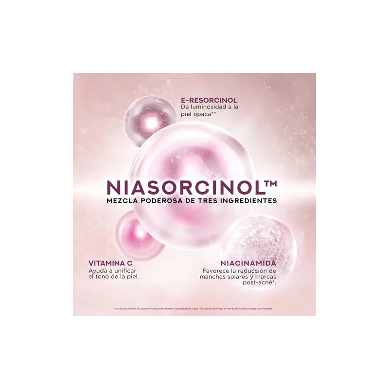 Solo POND'S con la investigación de científicos del POND'S SKIN INSTITUTE te brinda la nueva Espuma limpiadora facial con NIARSOCINOL que ayuda a reparar el daño celular desde las capas más profundas de la piel. Resultado de una mezcla poderosa de ingredientes Anti-Manchas: • Niacinamida: Previene y disminuye manchas solares, marcas post-acné e hiperpigmentación. • E-Resorcinol: Aumenta la eficacia de la Niacinamida para dar luminosidad a la piel opaca. • Vitamina C: Ayuda a unificar el tono de la piel para una tez radiante. Experimenta el poder de una piel limpia, luminosa y con tono uniforme. Resultados en 7 días.