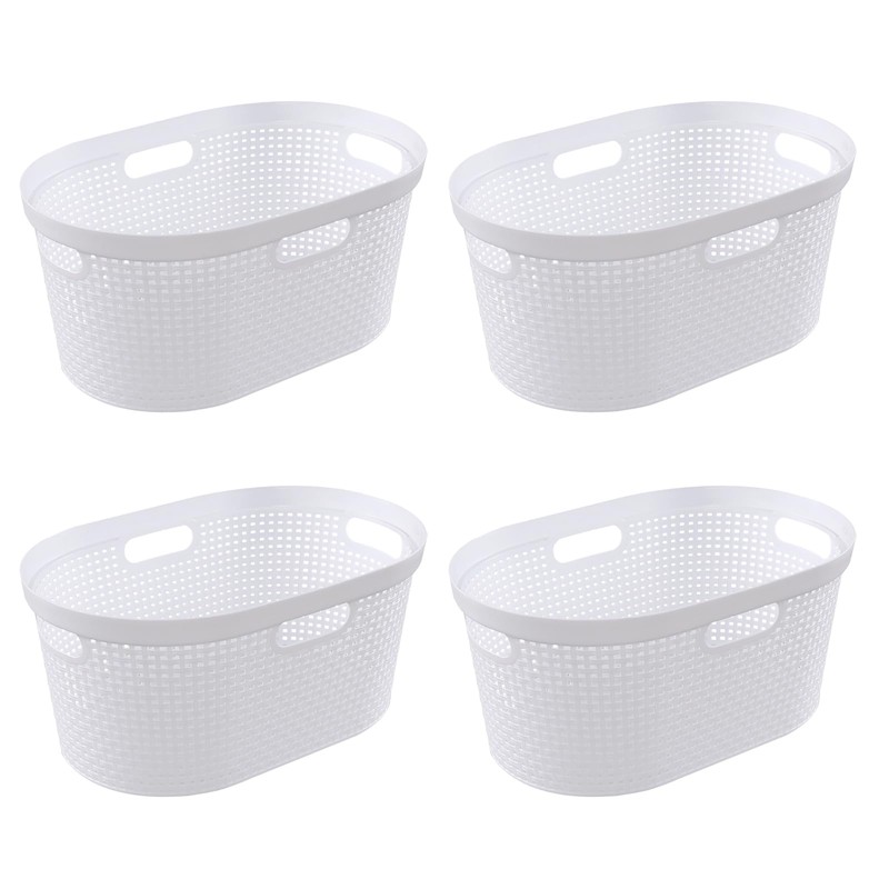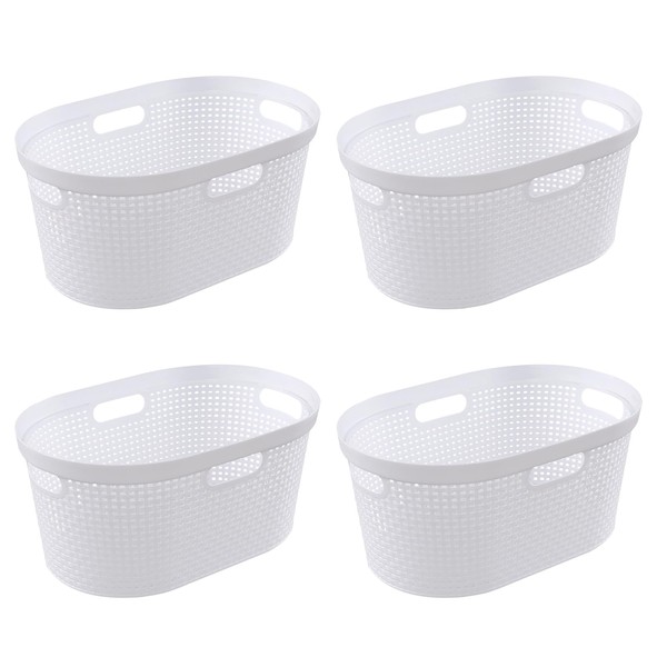 Ponpong 42 L Plastic Laundry Hamper, Plastic Laundry Basket with Cut-Out Handles, 4 Packs